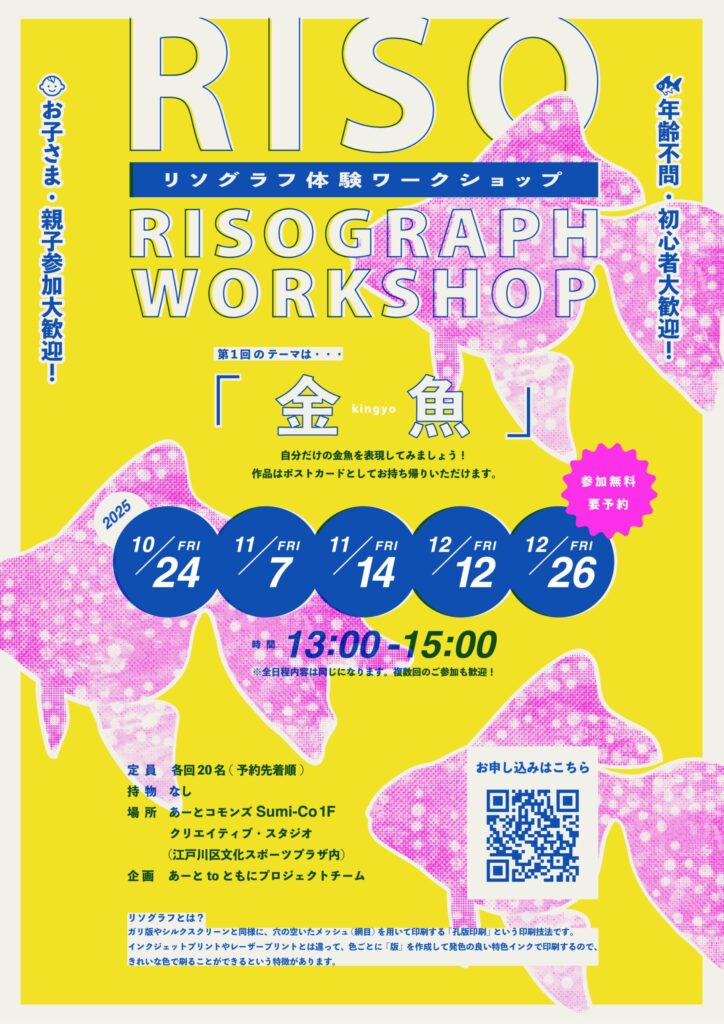 「リソグラフ」印刷機を使用して、あなただけの金魚を表現しよう!出来上がった作品はポストカードとしてお持ち帰りいただけます。